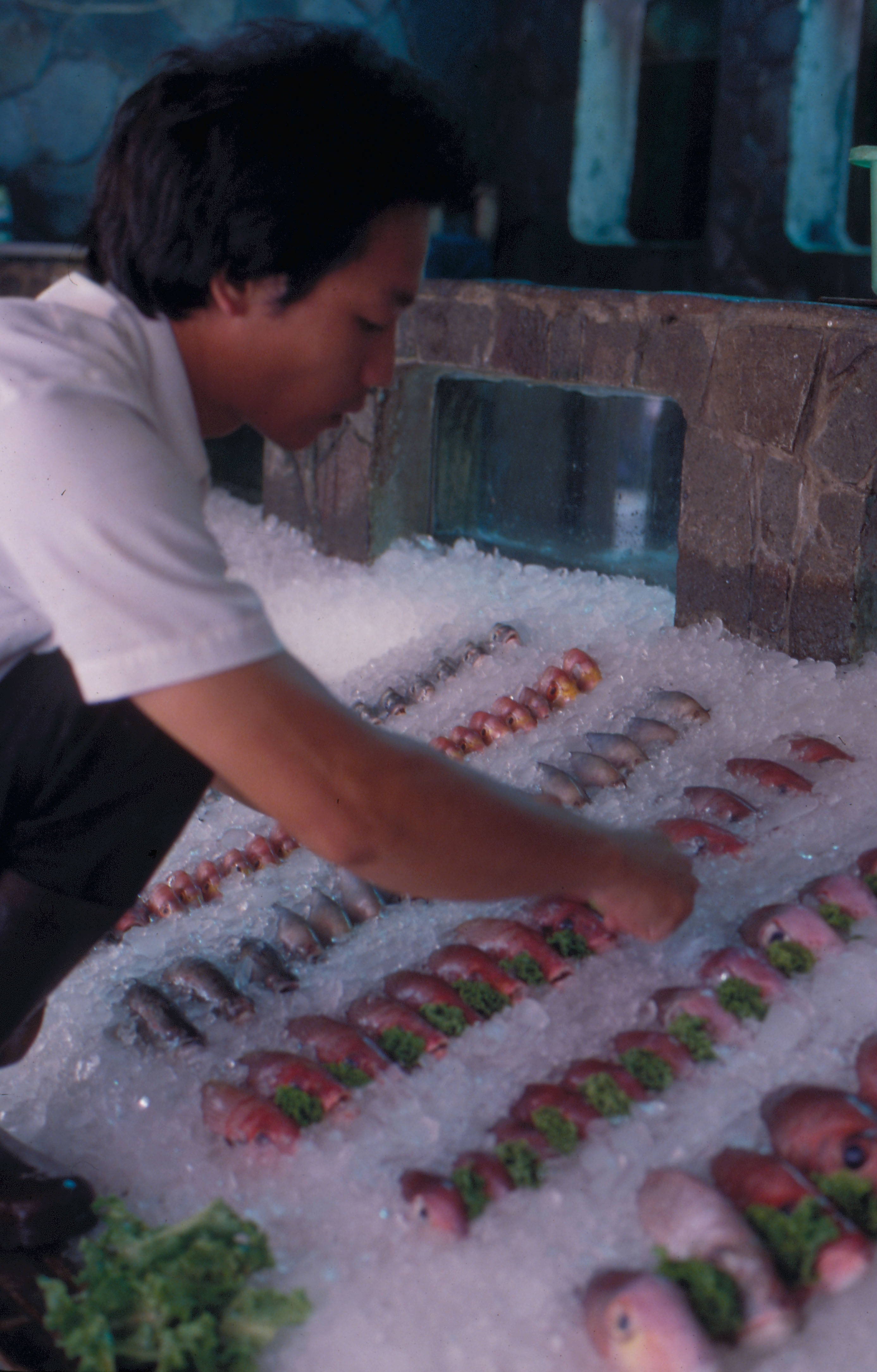 海霸王的菜單,是由廚務部門參照日本的海鮮料理方法擬成。「新廚師的進用採公開招考,或由現任廚師推薦,都由助手幹起,然後逐步增加工作份量,經驗累積到一定程度後才可獨當一面。」顧問洪璽曜表示。
