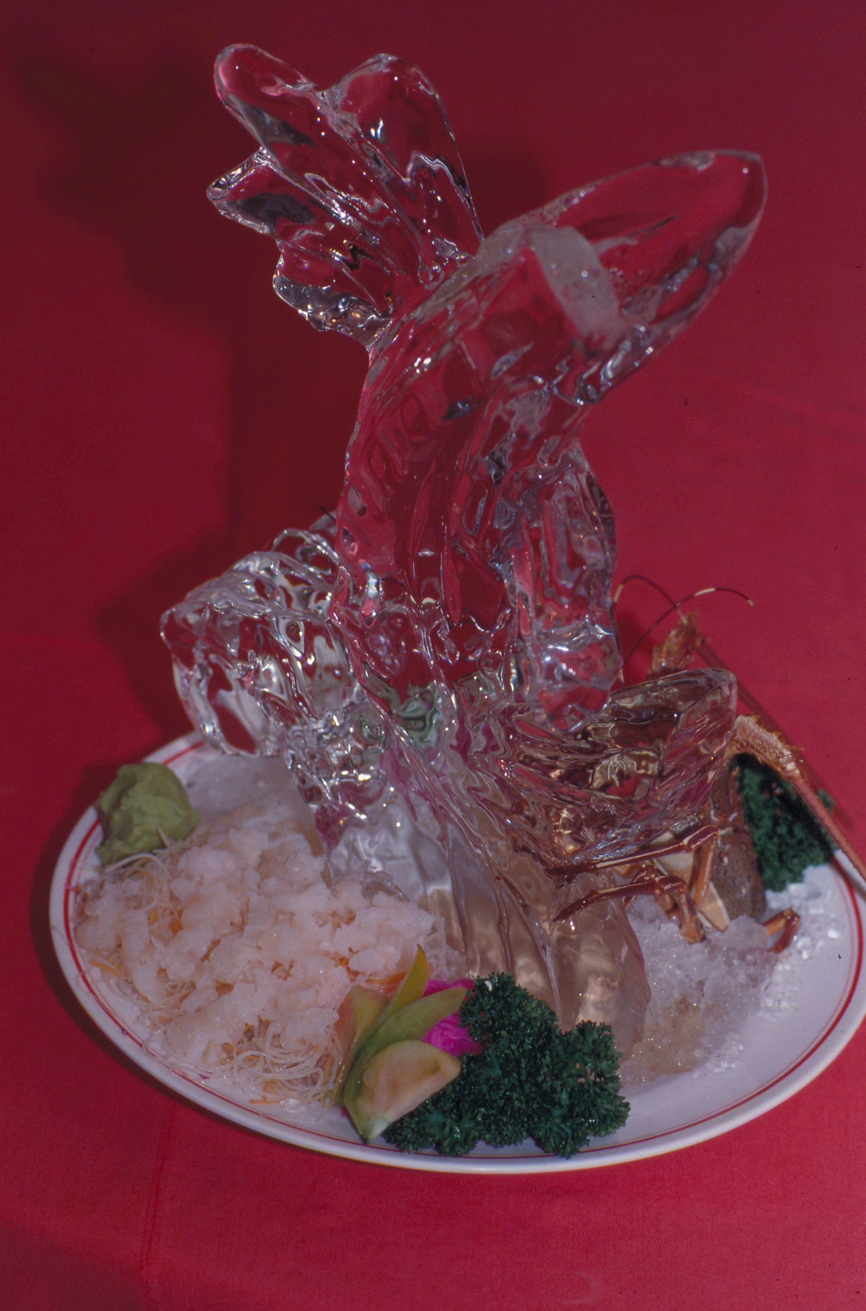 圖5.6:海霸王的兩款精美菜式:冰雕龍蝦和花籃海王具。