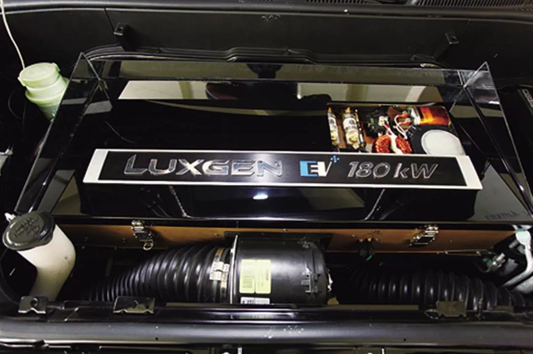 掀開納智捷電動休旅車的「引擎蓋」,電動馬達和電控設備取代了引擎,六千多顆電池則藏身在底盤。
