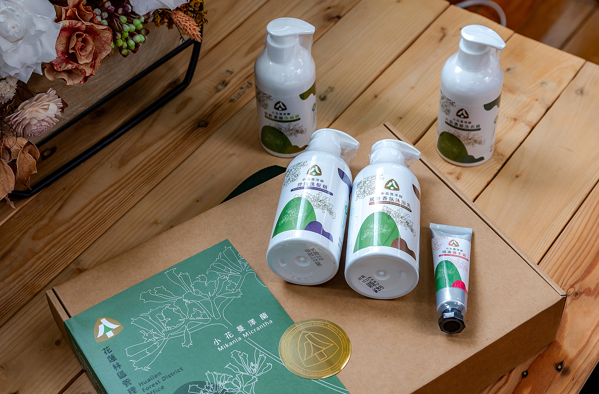 森林循環理念上的一拍即合,讓木酢達人欣然同意合作,並將初製的小花蔓澤蘭酢液再次精餾,才添加到洗髮精、護手霜、防蚊液等七款產品中。首波推出5,000瓶,不少消費者予以支持,很快地就銷售一空。