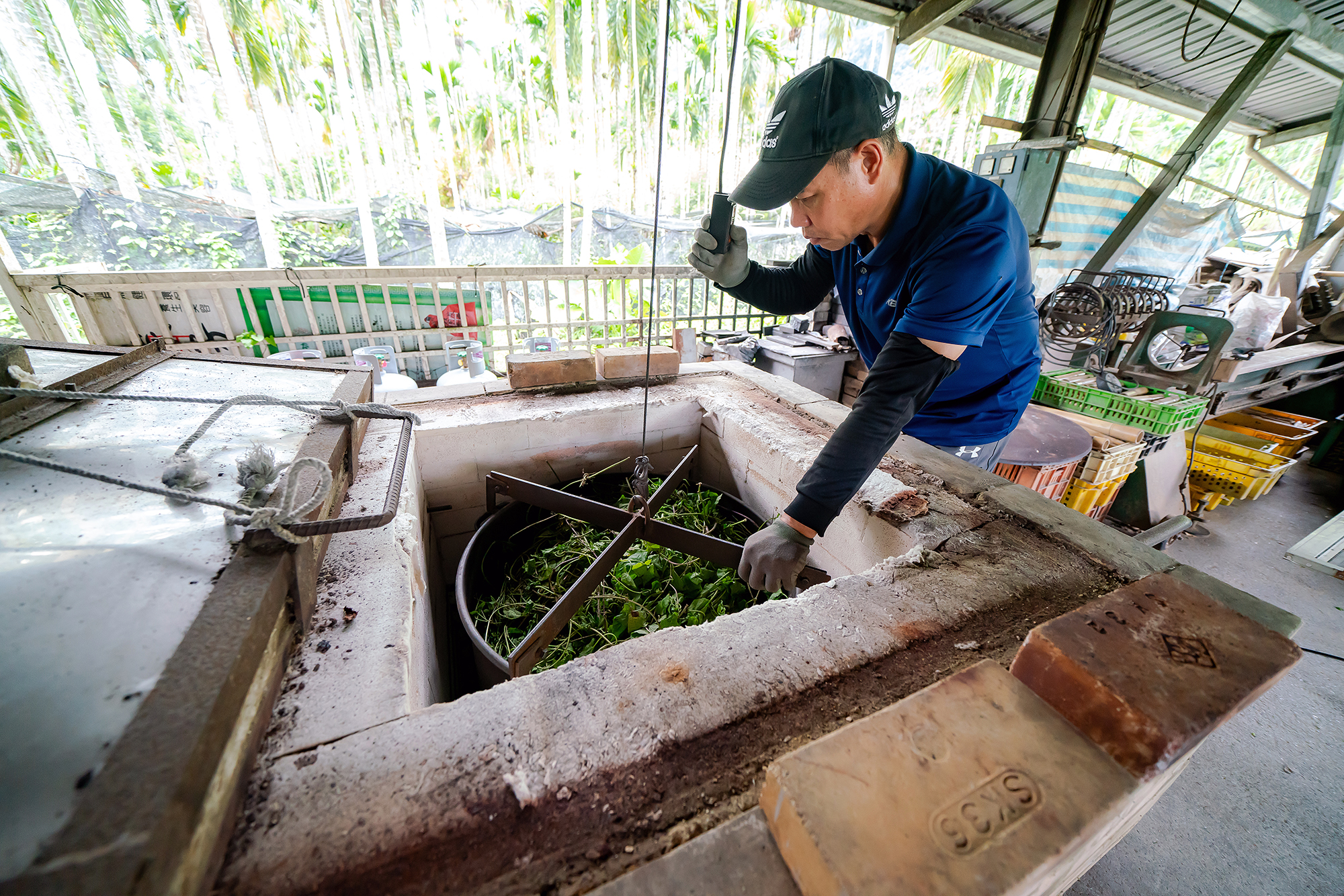 而歸功於讚炭工房負責人劉得劭的堅持,工房萃取的小花蔓澤蘭酢液品質優異。陶瓷工藝科班出身的劉得劭,在鄉間自力造窯,小型的方型磚窯容採電力或瓦斯來加熱,並以測溫棒輔助,可以精準掌控燃燒的溫度曲線。