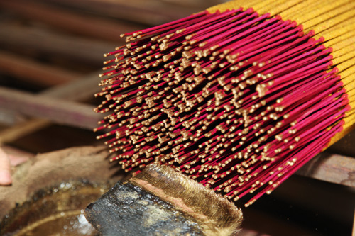 製香是一門專業技術,古法手工製香有15式,分別是浸、甩、上、搓、抖、切、沾、展、黏、掄、整、複、曬、染、妝,做出來的香講求「香味夠、香肉圓、香腳美」,看似簡單的掄香,如果沒有師傅教個三、五年,一般人怎麼樣也做不來。