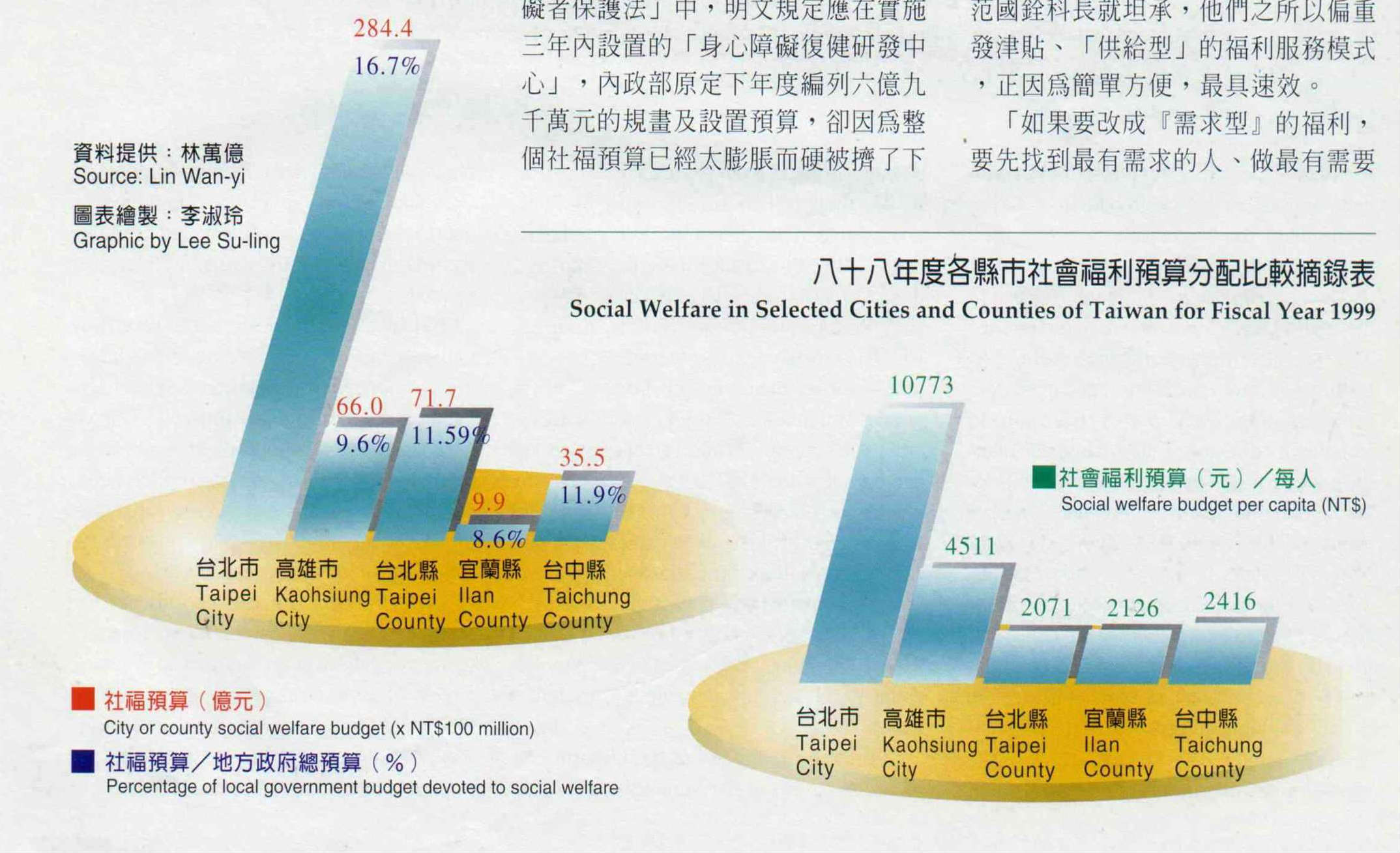 「這項福利本來是中央出百分之六怳迭B省府出百分之十三,各縣市分攤百分之二十二。我們本來有按往例編足預算,沒想到申請人數暴增三成。從四到六月,估計會出現一千三百多萬元的差額。中央片面對殘胞做出承諾又不肯全額負擔,要我們這種窮縣怎麼辦?」今年五月才在縣長彭百顯力邀之下走馬上任的國大代表兼南投縣政府社會科長陳婉真指出。