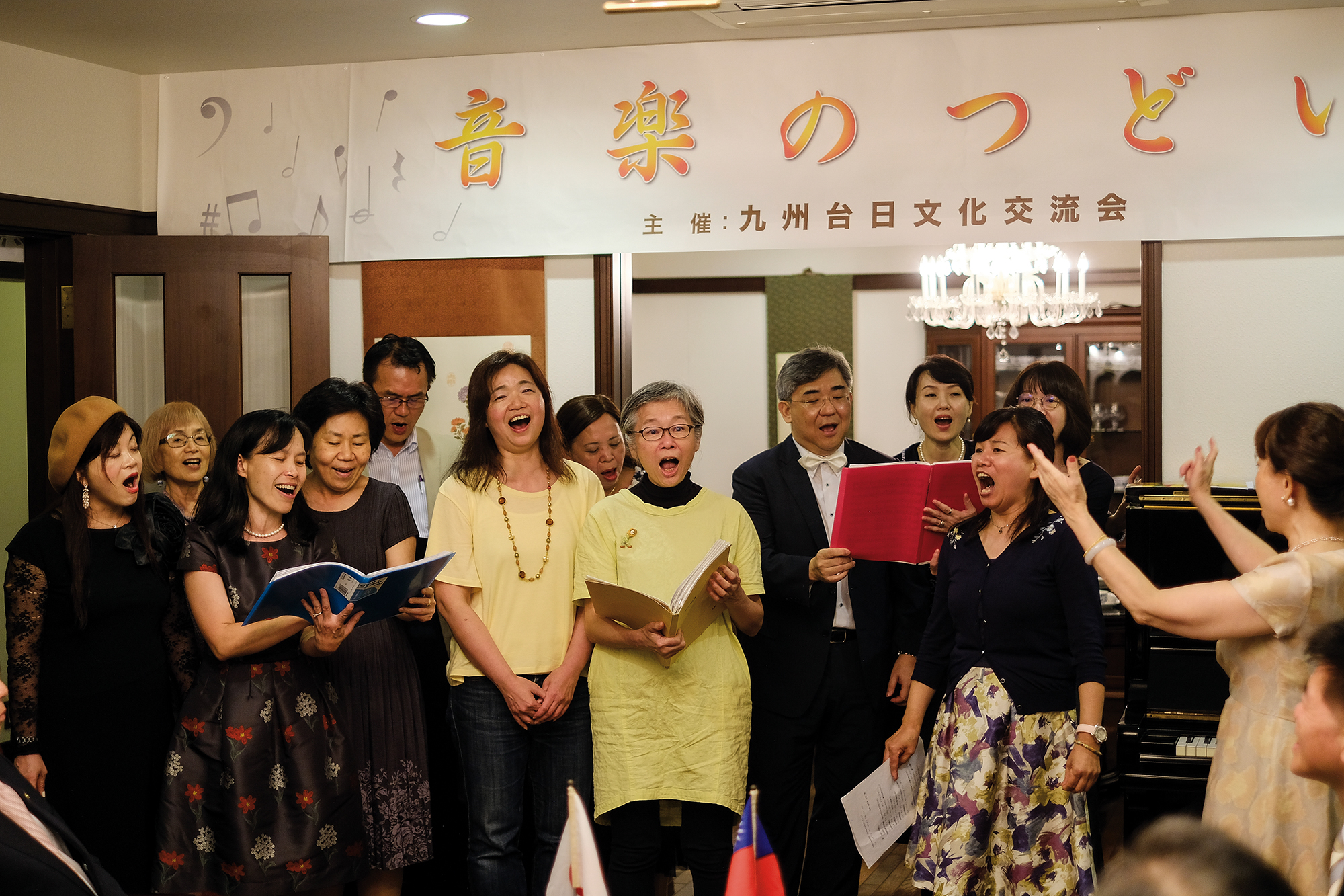 見到九州台日文化交流會會長本郷啟成(吳啟成),才知曉當晚的音樂表演全由他一手籌備,邀約剛接任基隆礦工醫院院長兼聲樂家的劉立仁、旅日的聲樂家吉川千巧(林千巧)及福岡歡喜合唱團表演。當晚還有大島組株式會社大島英二會長一家及報社記者共襄盛舉。一整夜的音樂饗宴,日文、中文、閩南語、義大利文等多語種,最後一起大合唱台灣的鄧麗君、日本的美空雲雀都演唱過的名曲「時の流れに身をまかせ」(中文版歌名:我只在乎你)。