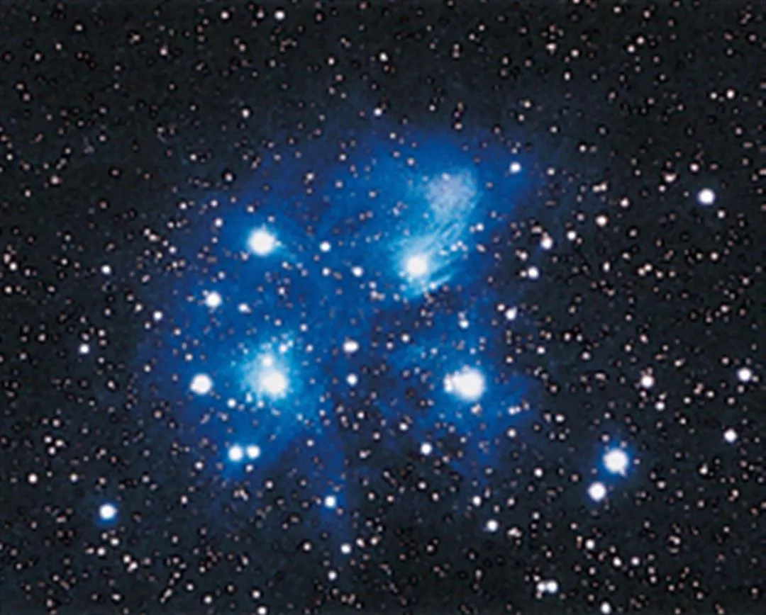 觀星不需大花費,只要光害少、視野好,加上一架小型天文望遠鏡,奇幻萬千的瑰麗天象,盡收眼底。圖左至右為獵戶座大鳥星雲、日全食、俗稱七姊妹星團的M45昴宿星團、海爾波普彗星(以上為台灣天文俱樂部提供)、獅子座流星雨。