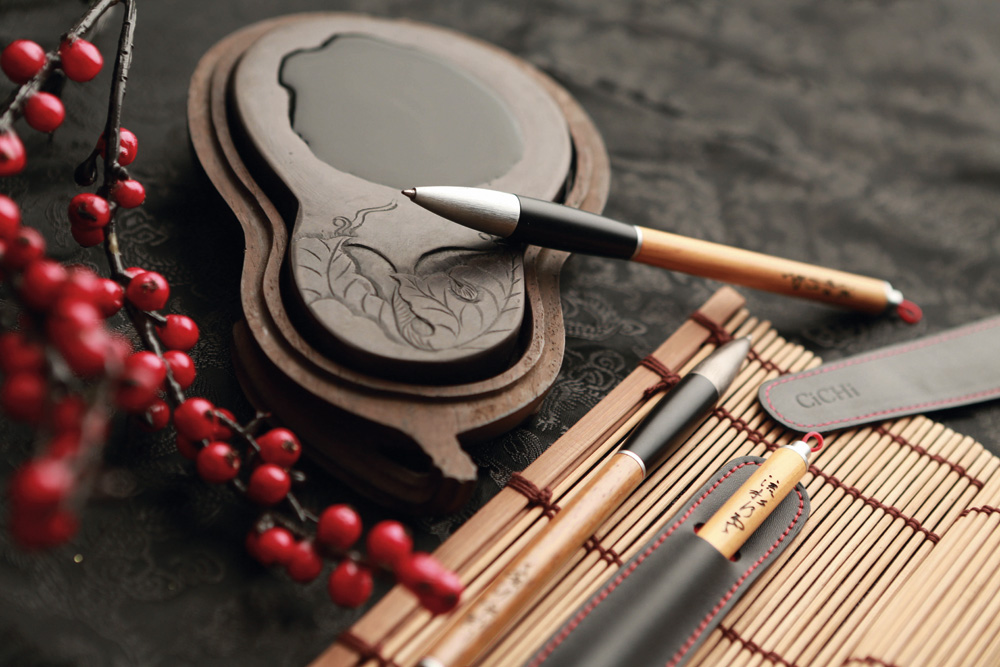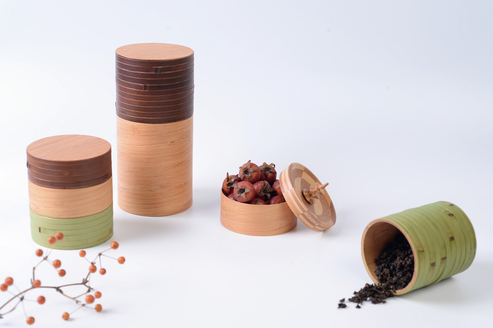辦公室小物的展品,凸顯了竹、木兩大材質在台灣工藝中,占有重要地位。吉力科技開發竹藝美學,設計、製作質地軟中帶韌的竹節名片夾。此外吉力也把台灣竹「戴」上身,把輕盈、富有彈性、不易斷裂的竹皮,磨製成竹皮手環,上班族穿搭配戴,既酷炫又時尚。