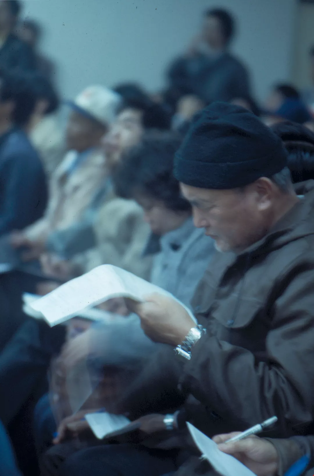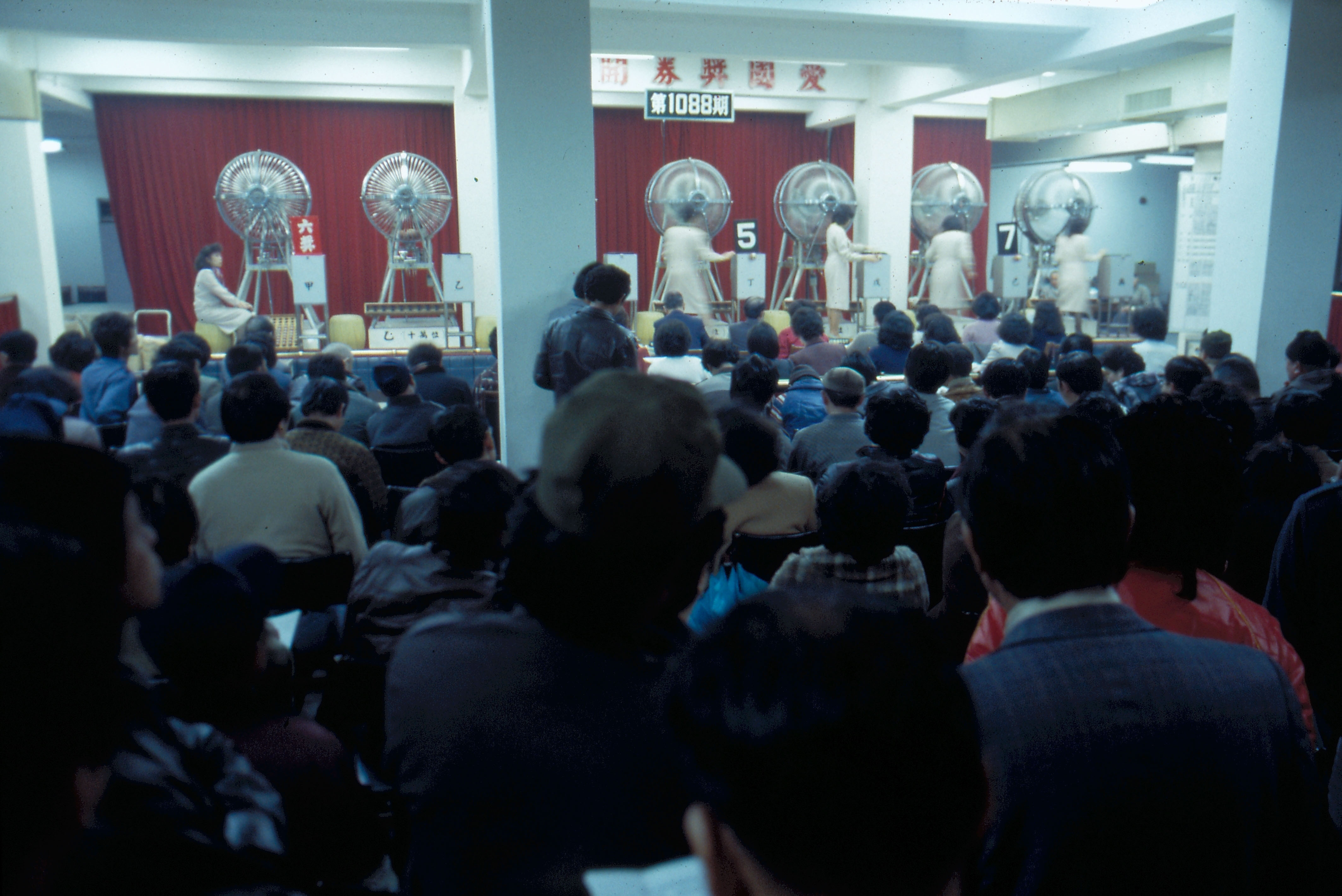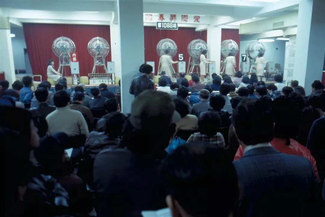 他們兩眼直盯著臺上七架搖獎機,雙手忙不迭地抄錄開出的數字,人雖多卻相當安靜。窗外寒風凜冽,屋裏卻因擁擠及一股屏息以待的氣氛,悶得教人喘不過氣來。