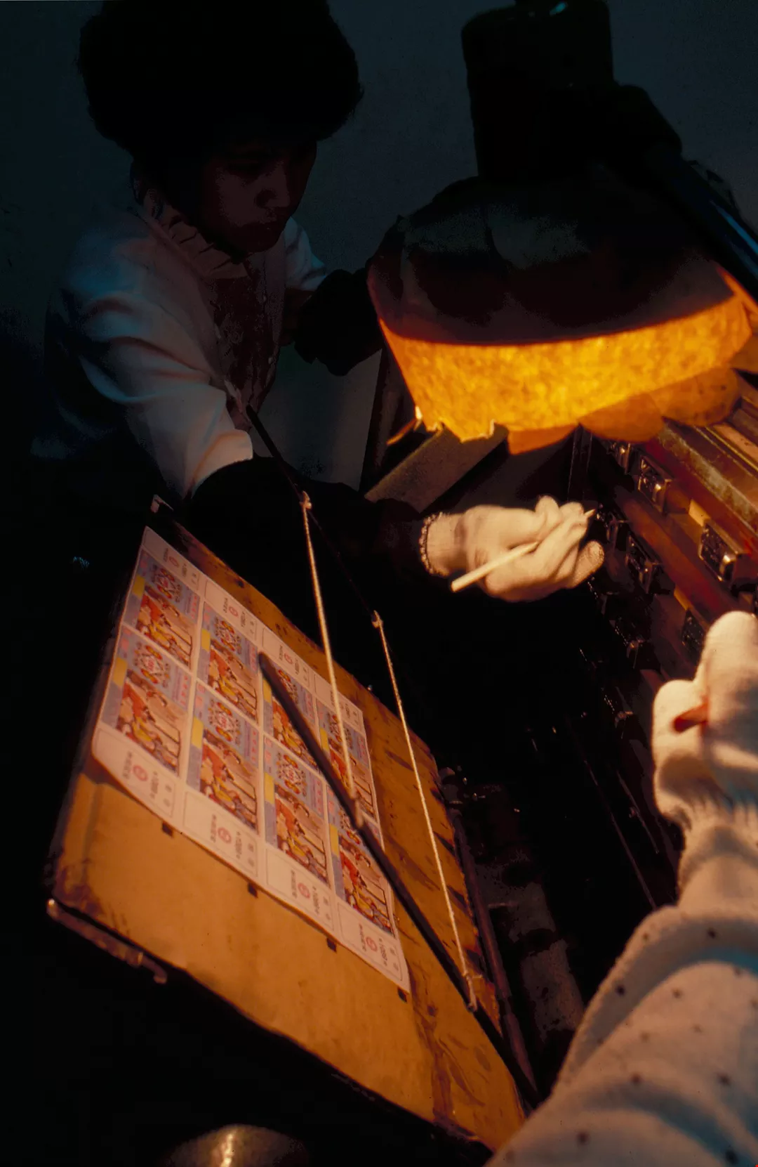 圖1.:台銀整券課發現有誤的獎券後,當場調撥號碼機,補印此張號數於空白券上。