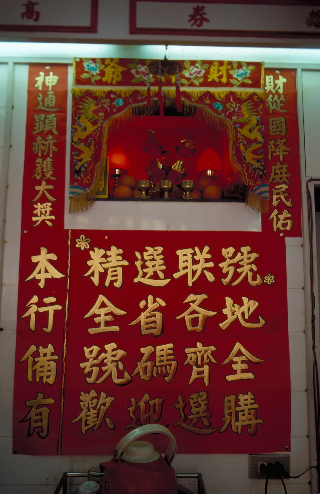 圖1.:幾乎所有獎券行都供奉土地公,此為招徠顧客的噱頭之一。(郭娟秋/鐘永和)