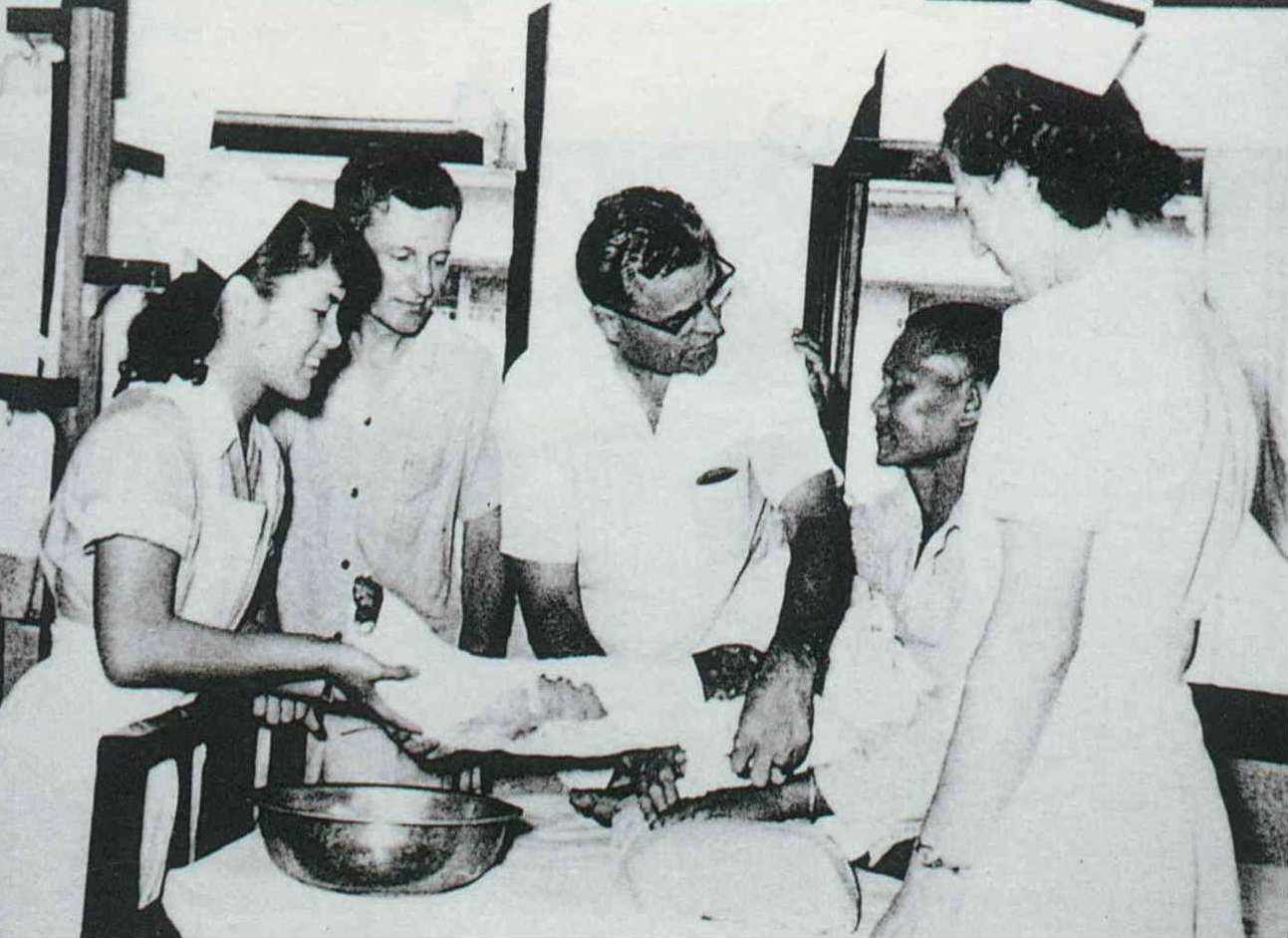 門諾創院院長薄柔纜,一生青春歲月都奉獻給花蓮,圖為其年輕時為病人診療的情景。(門諾提供)(門諾提供)