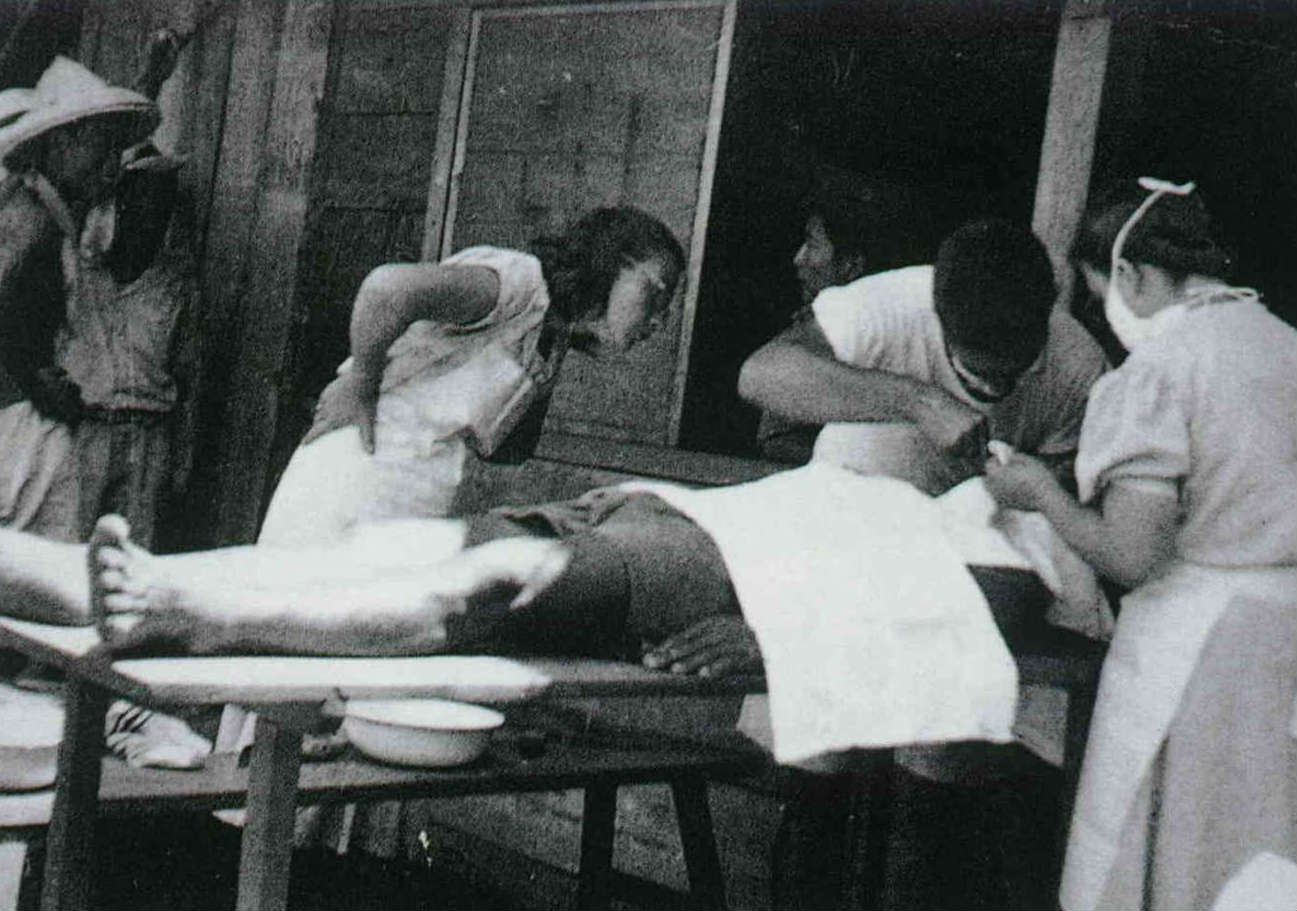 門諾創院院長薄柔纜,一生青春歲月都奉獻給花蓮,圖為其年輕時為病人診療的情景。(門諾提供)