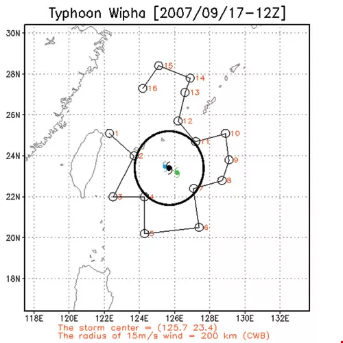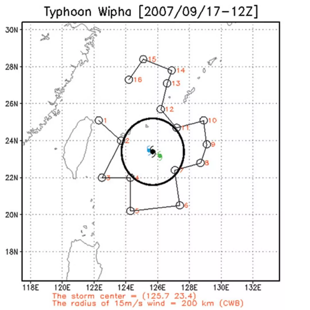 下午5時30分,研究人員在台灣東北角外海投下第一枚具有定位功能的「投落送」大氣探空儀,並以逆時針方式,飛繞韋帕颱風的外圍環流,繼續投下其餘14枚,以量測颱風環流的風速、風向、溼度、氣壓等大氣資料,並即時回傳給中央氣象局及各國的預報單位。
