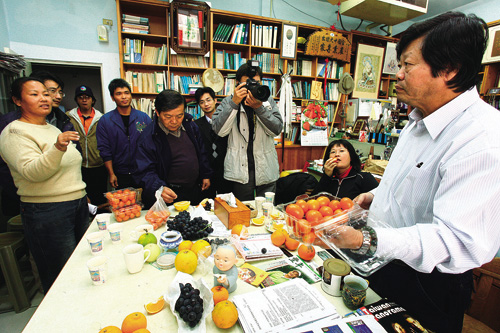 蔡東纂的研究室裡,經常有來自全台各地的農民,帶著自家生產的蔬果前來請益,即席展開一場蔬果品評大會。