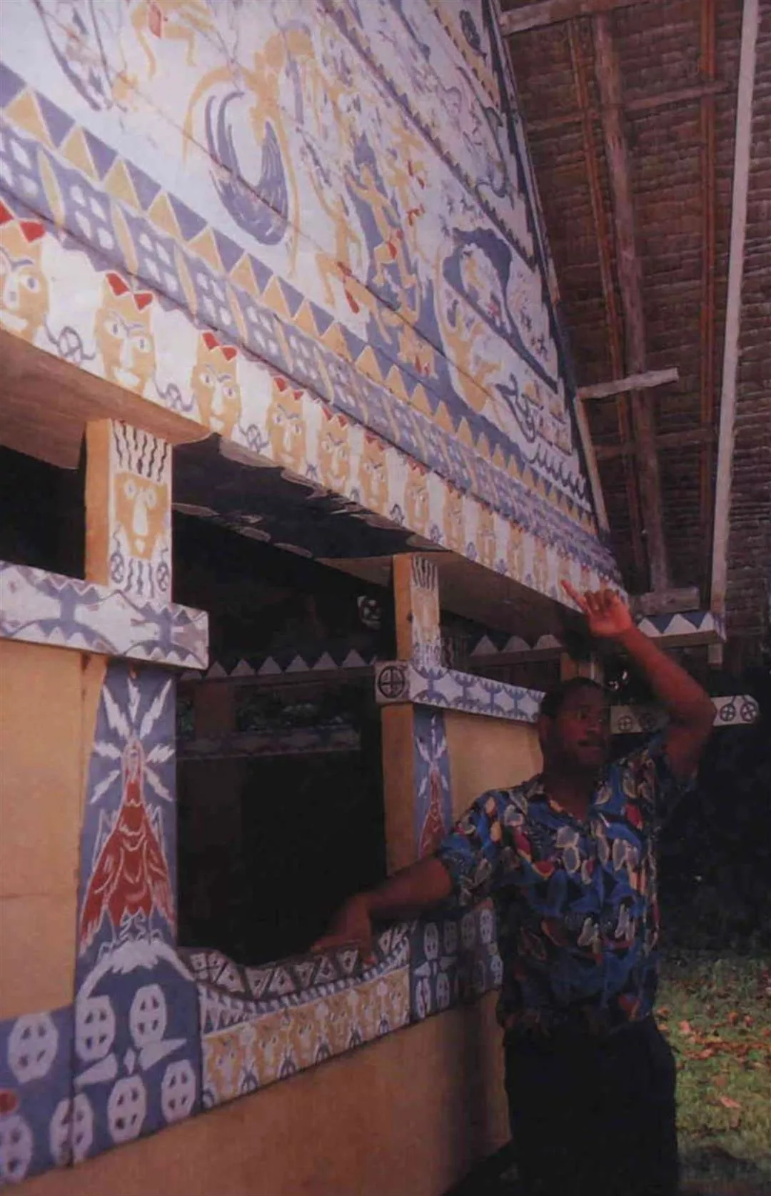 帛琉民族與台灣原住民皆為「南島語族」,文化上同出一源,語言系統十分相近。圖為帛琉傳統建築「男人會館」,是早年男人聚會聊天、討論政事的場所,禁止女人進入。(薛繼光)