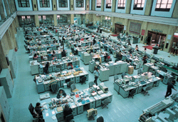 金改元年,金融現代化工程雖似波瀾壯闊,卻也暗潮洶湧,改革成敗攸關台灣整體競爭力。圖為歷史悠久的台銀總行營業大廳。