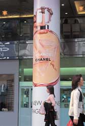 精美的促銷廣告,挑動著過往人群的購買慾望,稍微「意志不堅」,又要墜入物慾深淵,難以自拔。