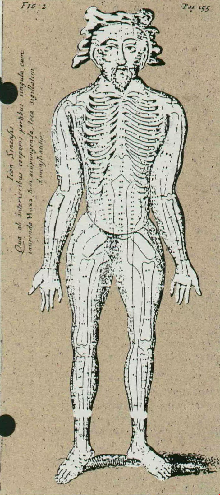 (右)西方很早就注意到中國針灸,圖為在西方發現的第一張穴道圖解,於一六八三年取材自中國著作,繪成歐洲樣式。(取材自李約瑟的《針灸:歷史與理論》)(取材自李約瑟的《針灸:歷史與理論》)