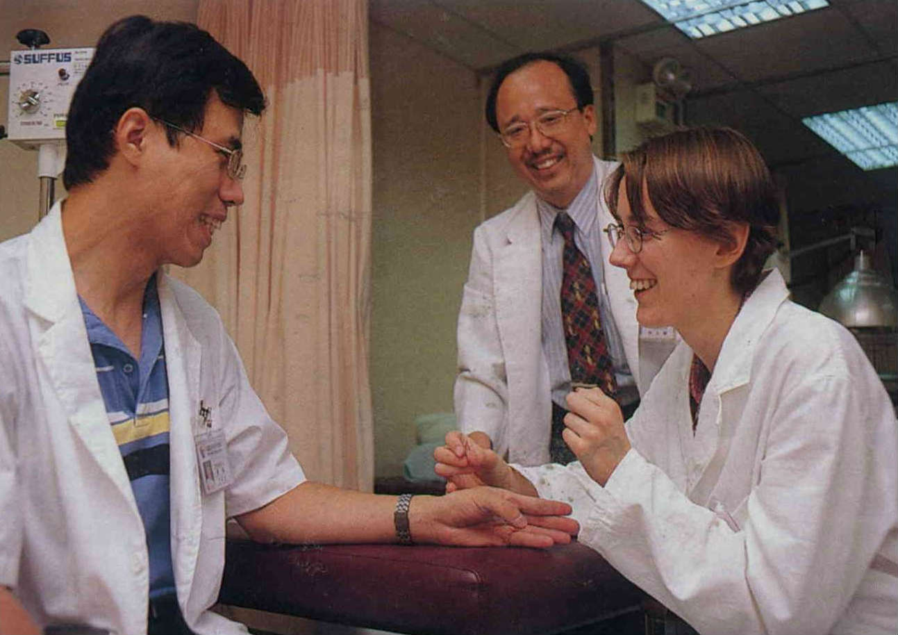 十年前,國科會也對當時民間盛行的氣功好奇,召集國內科學家進行研究,崔玖和陳國鎮都在研究者之列,陳國鎮因此有機會結識也在陽明醫學院任教的崔玖,他還記得初次見面,她在陽明醫學院用穴診儀替他作全身檢查,「在三個多小時裡面,崔教授把我從小到當時的許多身體狀況都指出來,讓我對這套儀器發生極大的興趣,從此就一頭栽進這個研究中。」