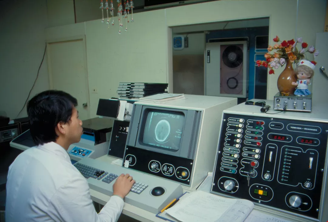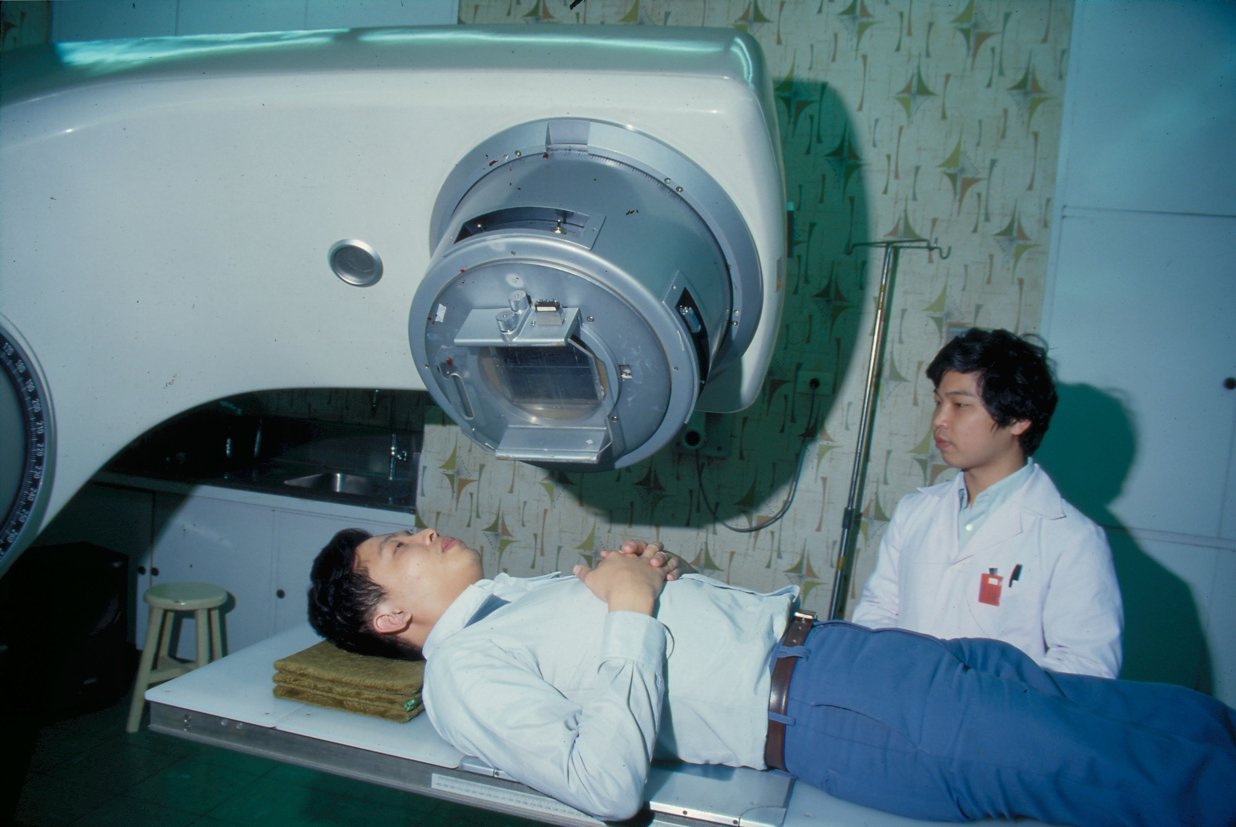 圖1.2.5:高醫擁有許多新式醫療設備,圖1.是電腦斷層掃描器,為放射線檢驗儀器。(楊永山)