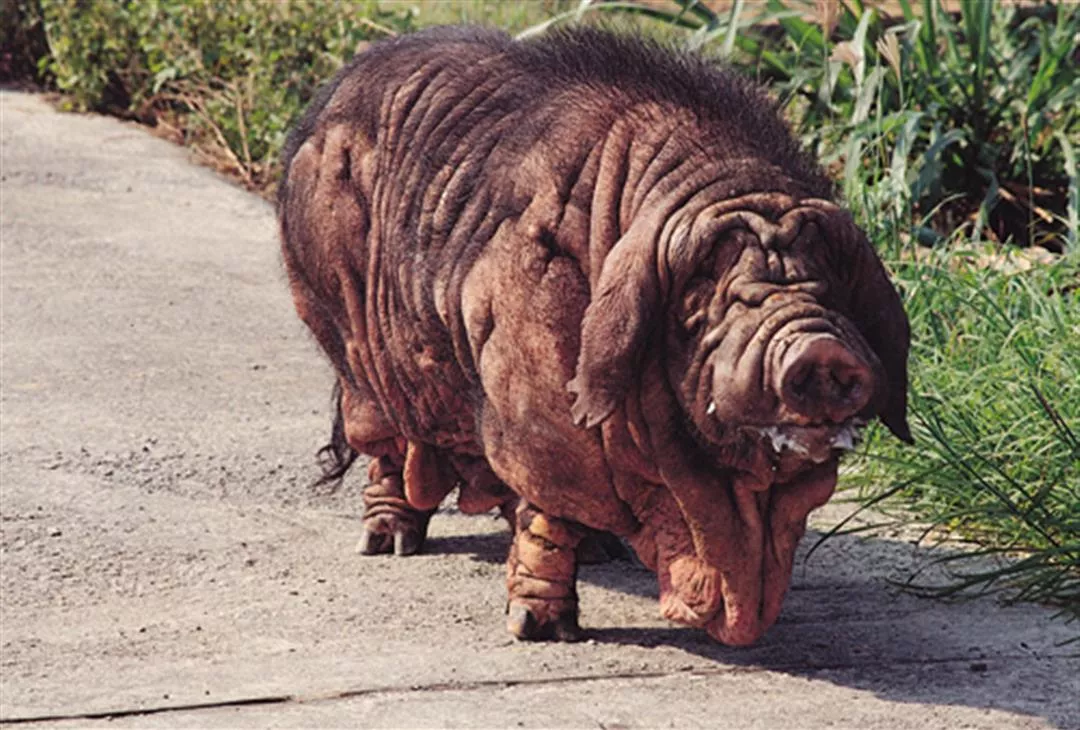 早期客家庄常見的黑毛「桃園豬」,是廟會慶典的「豬公」首選,但因長速慢、瘦肉率低,早已被市場淘汰,1987年與蘭嶼豬一起被選為台灣的保種豬。