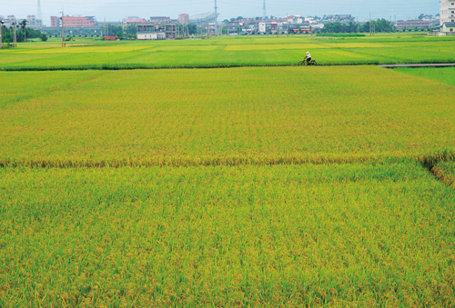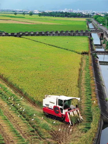 藍天白雲、平疇綠野,土地召喚青年從都市走向農村,為台灣農業注入源源活水。圖為宜蘭鄉間金黃稻穗豐收纍纍。