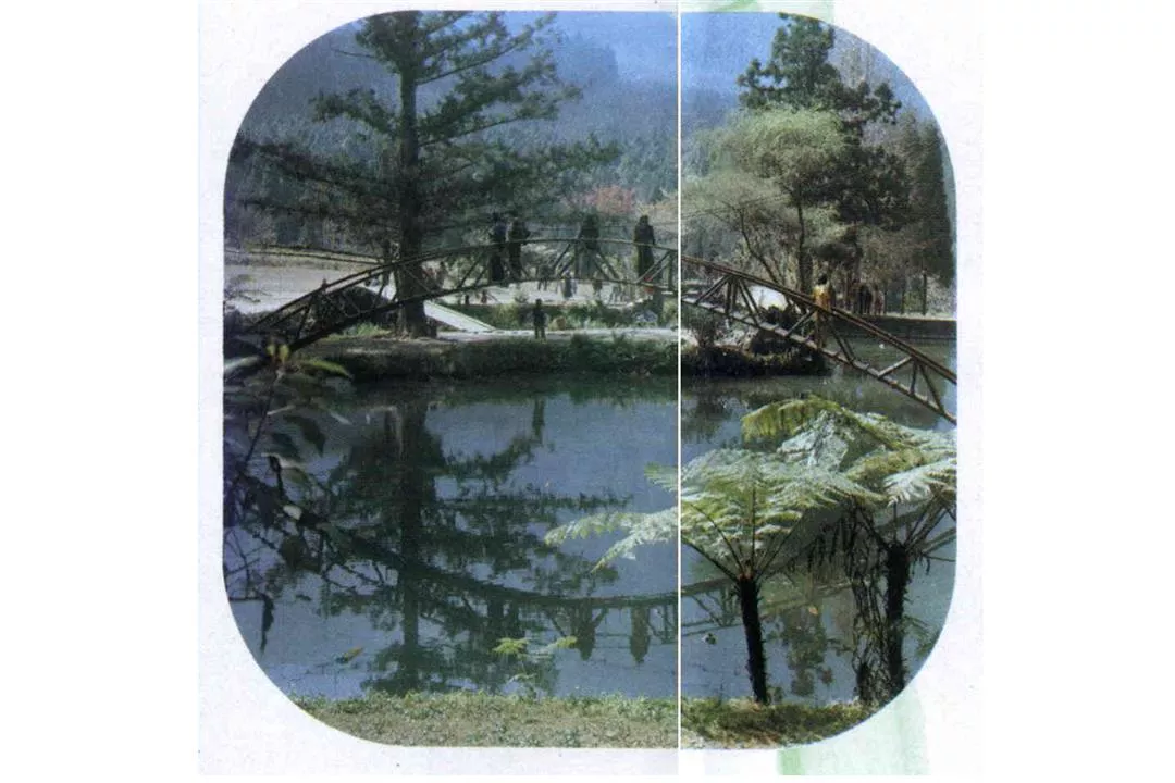 竹的用途甚廣,國人用於建築上更隨處可見:溪頭大學 池之竹橋。