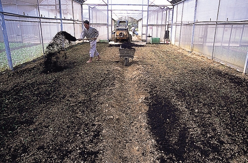 福田農場將採收下來的豌豆苗根莖製成有機堆肥,再撒入菜園為土壤添加養分。如此生生不息循環,一點也不浪費。