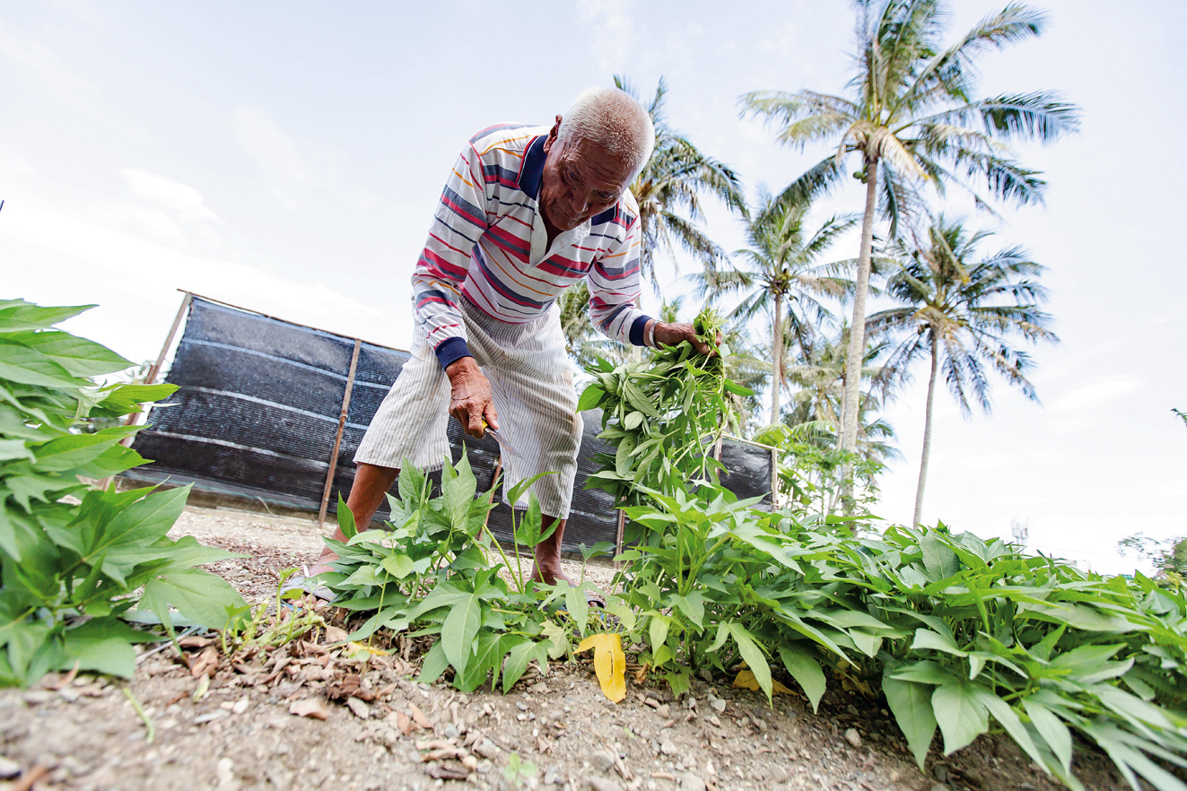 「你們帶回去吃啦!」他精神奕奕地走到空地旁的菜園,刈下一大把的地瓜葉,將醫師的後車廂塞得滿滿滿。