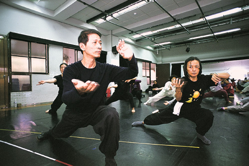 出身大師熊衛門下的「太極導引」教練紀連成,站在教室前端,背向著學生練習放鬆的基本功。「鬆心、鬆身、鬆沈,」紀連成教導學生,從頭皮開始,一吋吋宛如水桶漏水般,將緊繃體內的壓力緊張慢慢釋放出來。學生們鬆腰落胯,斂目凝神,偌大的教室裡全無聲響,敏感一點的人卻可以隱隱感到指尖麻脹,體內的氣流轉,和空間裡的氣交感共振。