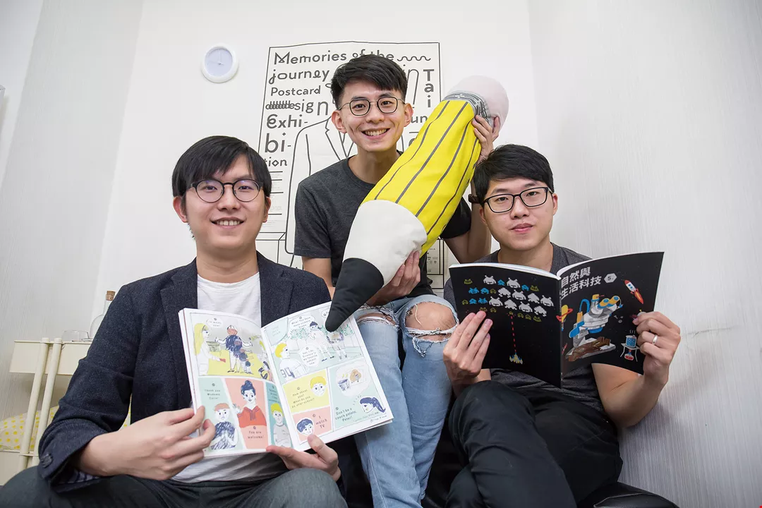 左起:張柏韋、林宗諺、陳慕天三人組成美感細胞,致力提升台灣的美學素養。(林旻萱攝)