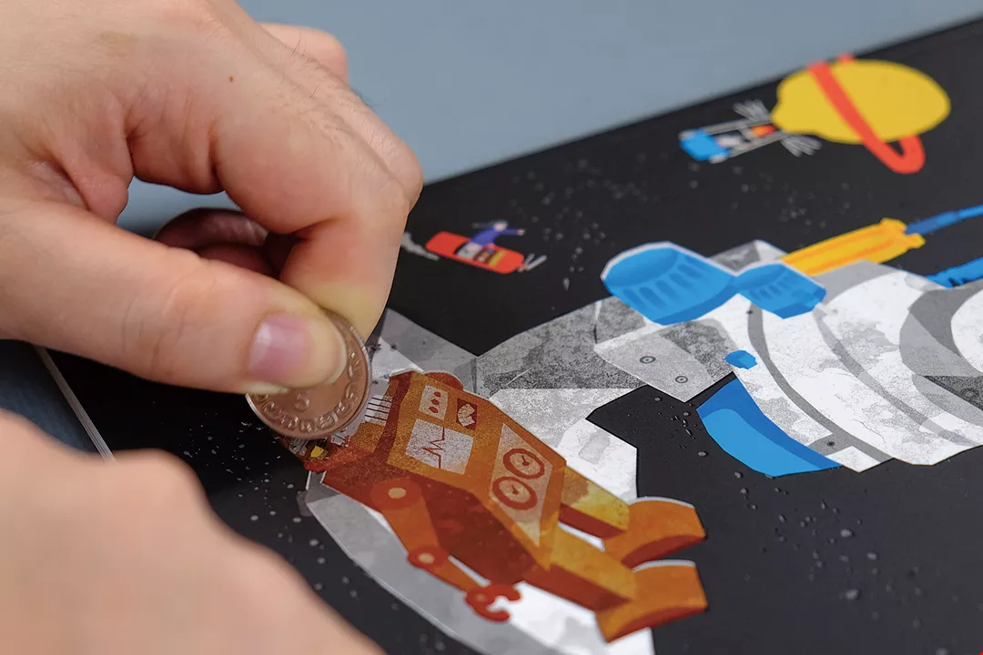 設計師將課本結合擴增實境、刮畫等創意巧思,讓學習更好玩,激發孩子想像力。