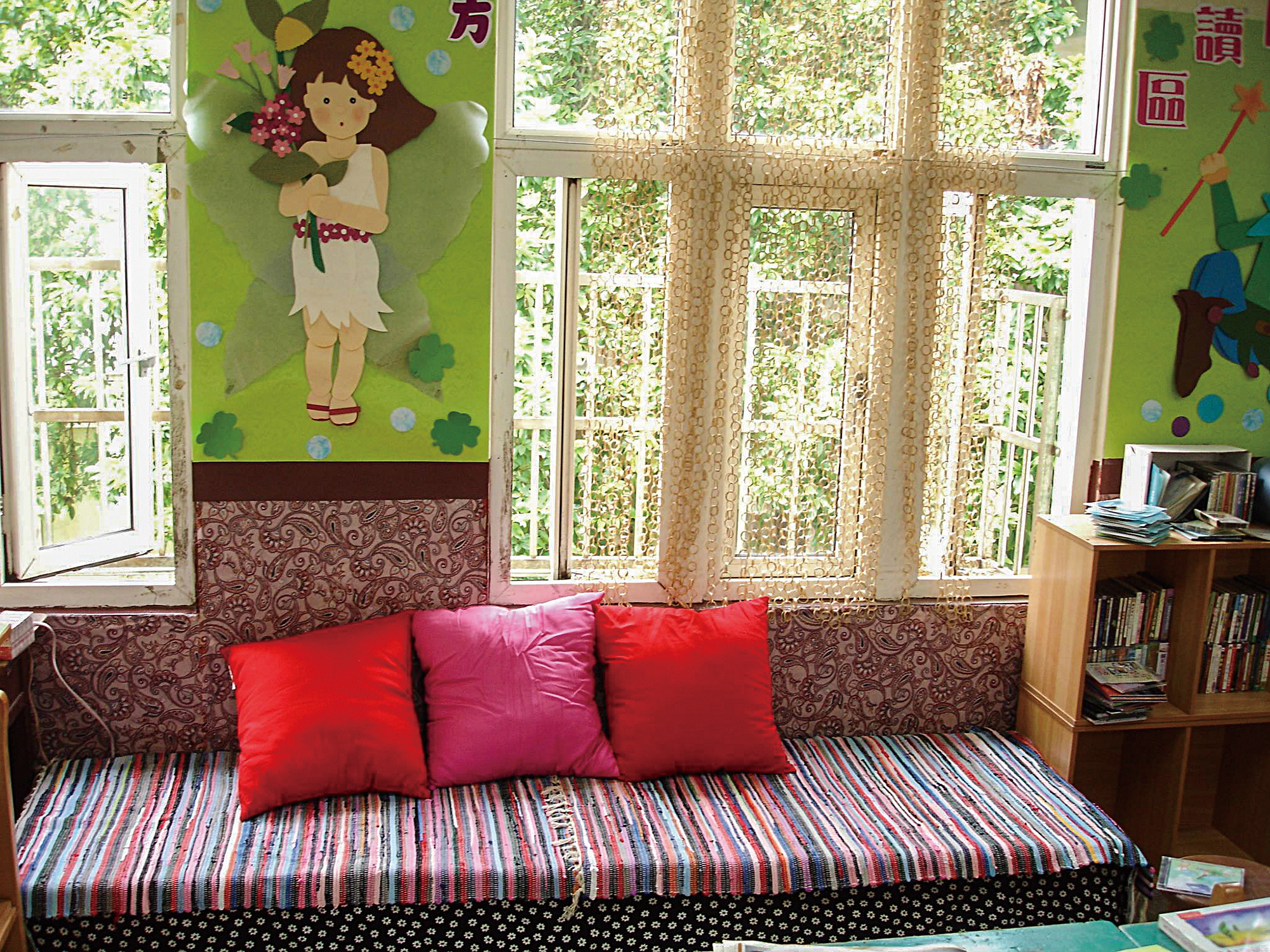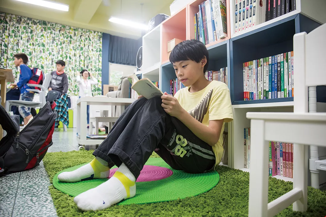 在用心布置的教室裡,孩子可以找到自己喜歡的角落,自在閱讀。(林旻萱攝)