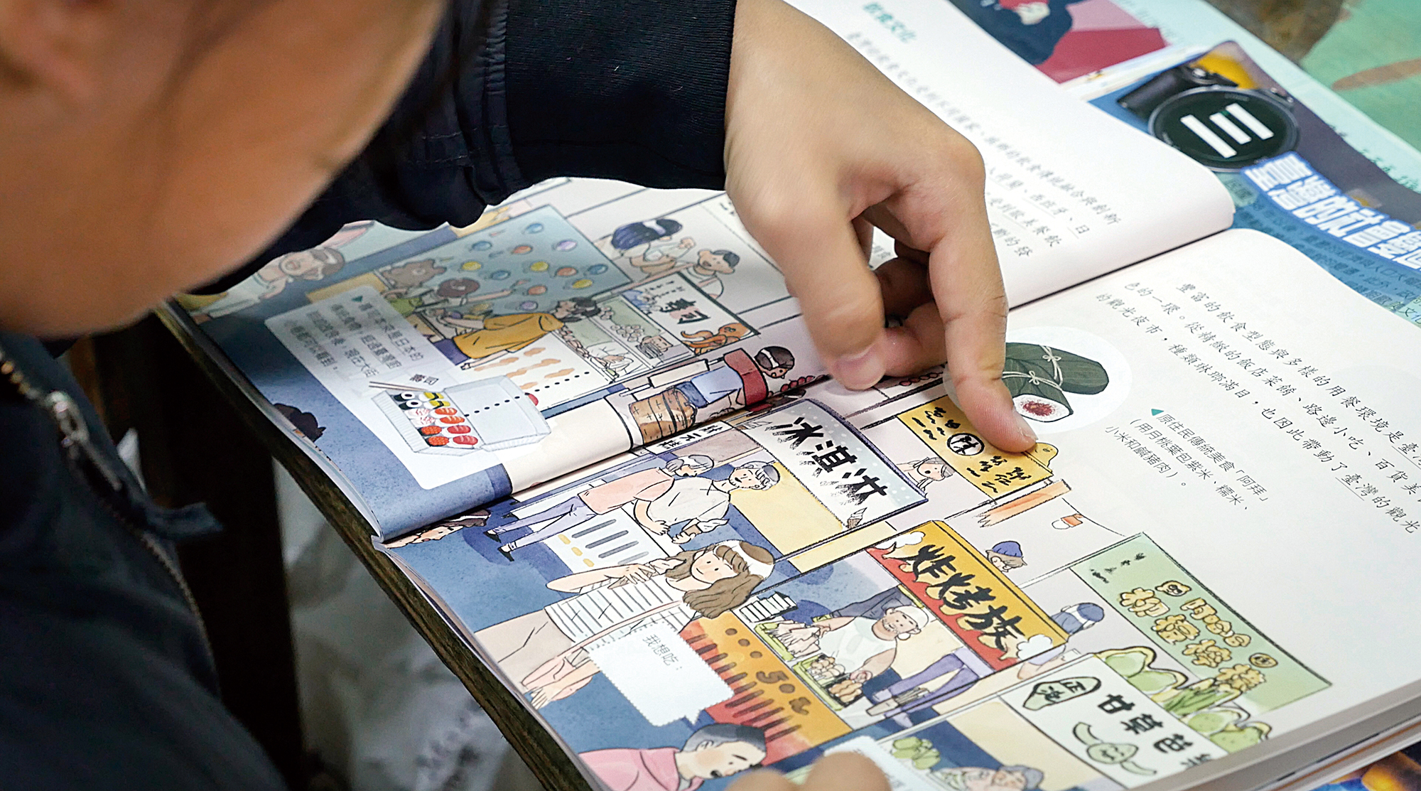 社會課本由擅長資訊設計的「圖文不符」操刀,透過圖像讓資訊的傳達更加一目了然。用逛夜市的插圖介紹食物,性別平權、原民議題也都以圖像表現,激發想像,給予孩子與老師討論的空間。