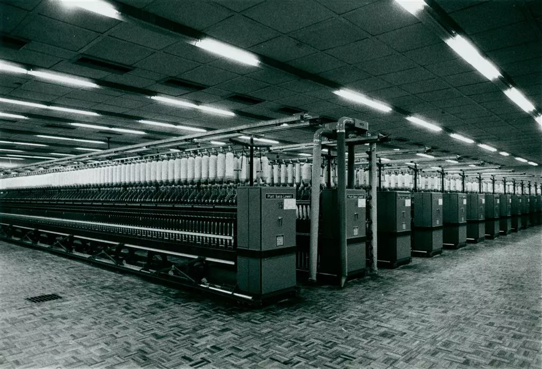 圖4.5:設備現代化的紡織廠,不僅生產設備自動化,廠房內並設有自動空調系統,環境整潔。(鐘永和)