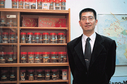 站在辦公室牆上的一幅大陸中草藥分佈圖前,個子高瘦的九鼎生物科技公司研發總監楊建新,滔滔不絕地講述著從新疆到福建的各種中草藥基源特性。