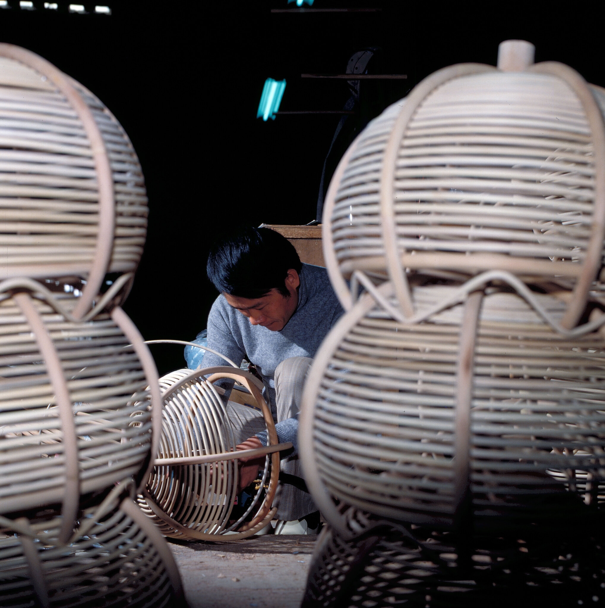 為室內添加氣氛和情調的藤製燈罩,是工人一根一根釘出來的。