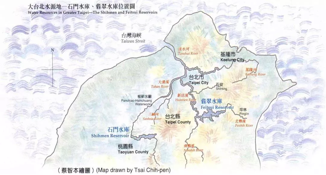 攤開台灣地圖,淡水河系如一巨掌伸展在北台灣大地上,上游兩大支流,北有翡翠高壩沿著北勢溪腰部一攔,南有石門大壩在大漢溪中游一擋,圍出了兩個巨大人工湖泊,成為台灣三分之一人口的生命之源。