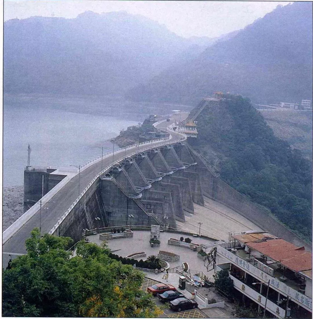 由寬敞的北二高下桃園龍潭,再隨著林立的「活魚三吃」招牌,來到石門水庫。湖光山色之間,點綴著金黃外觀的旅館、長廊,綠樹裡可見餐廳、房舍。假日,石門八景遊客流連,湖面遊艇穿梭,水庫更是台北縣、桃園縣市與新竹部份地區的用水來源。