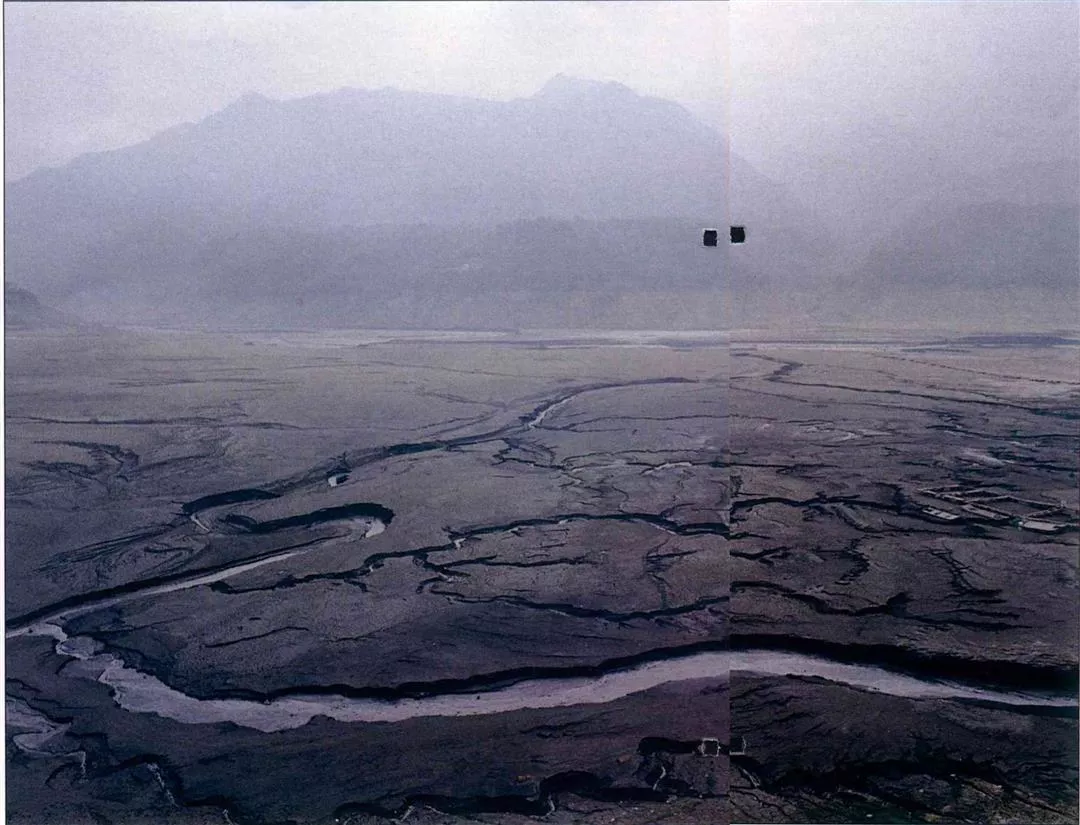 石門水庫積砂日肥,蓄水日瘦,快乾、快淹、快濁,前兩年乾旱,當初水庫蓄水淹沒的土地廟都出來透氣了,許多人記憶中水色盈盈的湖泊,成了砂石車的快速道路,車子就由乾硬龜裂的底泥上,直搗上游。