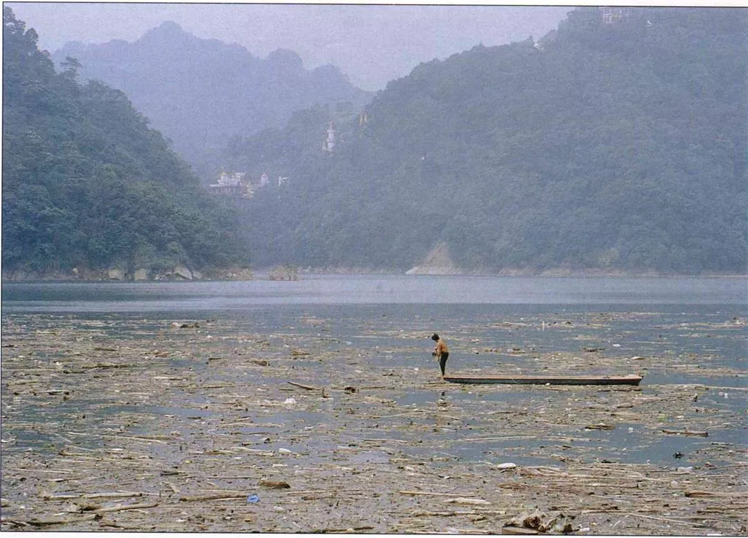 三十三年前,葛樂禮颱風幾乎造成石門水庫潰壩,所有工程師站在壩頂上要與之共存亡。今天,強烈颱風過去,壩頂上,同樣有人憂心忡忡,「這下虧大了,」外地來的包商看著山上漂流木、垃圾蓋滿湖面,搖頭說他以一百多萬標得清除湖面,用了二十個工人,撈起二十噸垃圾,可是「怎麼越撈越多?」