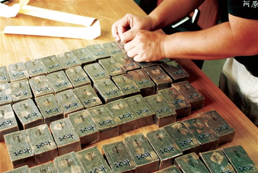 18道工序,保證純天然、純手工:取水、植草、採收、洗滌、調理、注油、攪拌、添加、塑型、皂化、脫模、乾燥、裁切、嚴選、擦拭、印記、穿衣、誕生。
