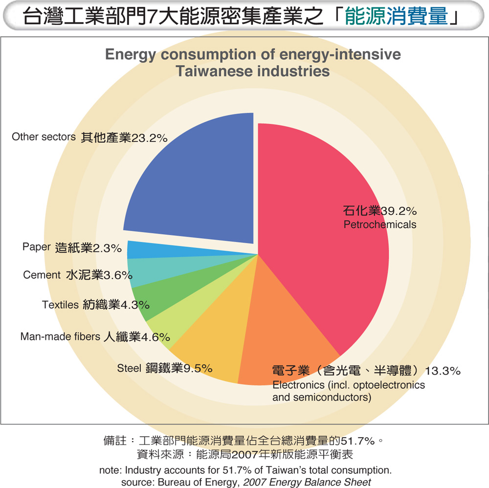 台灣工業部門7大能源密集產業之「能源消費量」/資料來源:能源局2007年新版能源平衡表