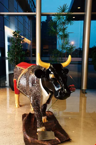 由數百片華碩主機板拼成的裝置藝術,在關渡總部吸引往來訪客的目光。