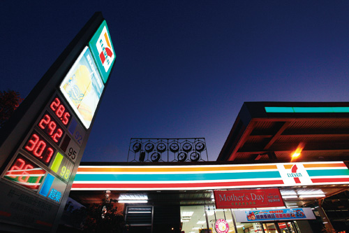 企業低碳化不只是電子科技業的競爭籌碼,台灣傳產、服務業也必須正視暖化帶來碳風險和碳商機。圖為統一超商率先在林口設立的太陽能及風力(圖中風扇處)供電據點。