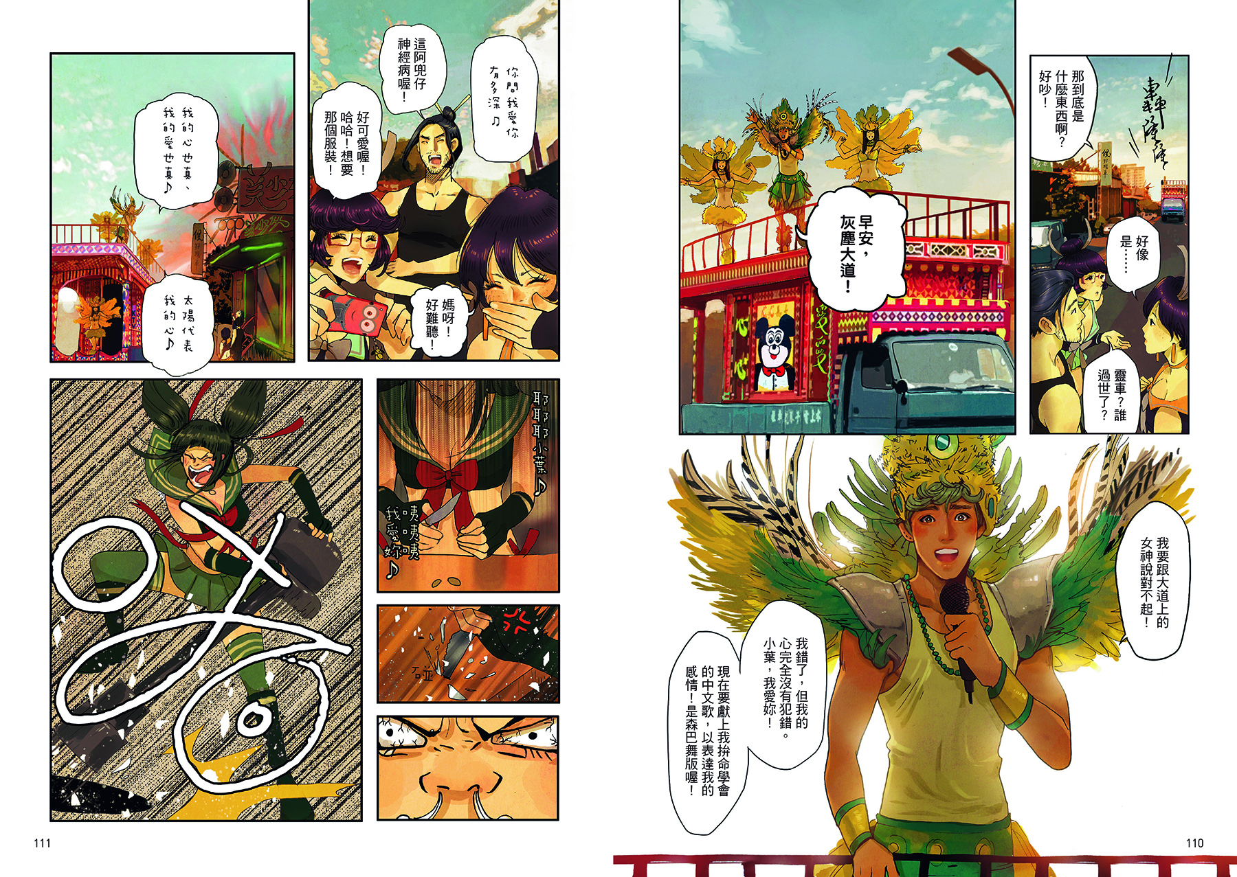 另外,他融匯在巴西、台灣的生活經驗和文化,在劇情中加入阿茲海默症患者與照護者、跨性別族群,還有異國文化衝突等元素,使故事讀來不僅有歡笑,也有感動的淚水。