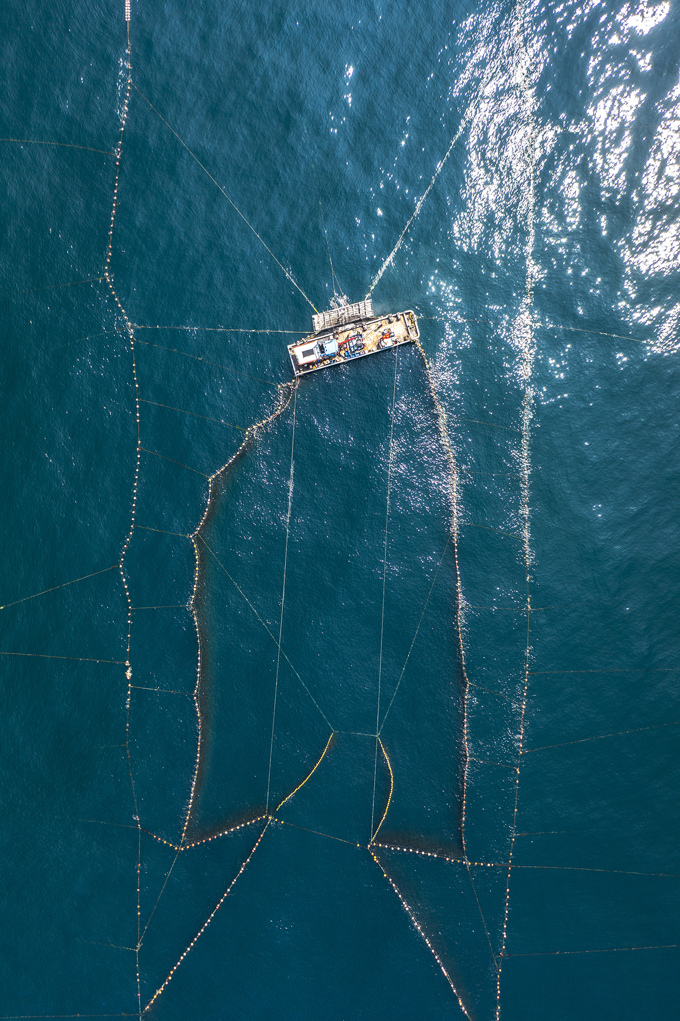 過往使用單頭網具的明發漁場,一天最多只能收一次漁獲,而為了增加起網次數,鄭明發研發出獨特的「雙頭單落網」,搭配精準掌握漲退潮時間,讓北面和南面的箱網分別能在漲退潮時撈捕漁獲。