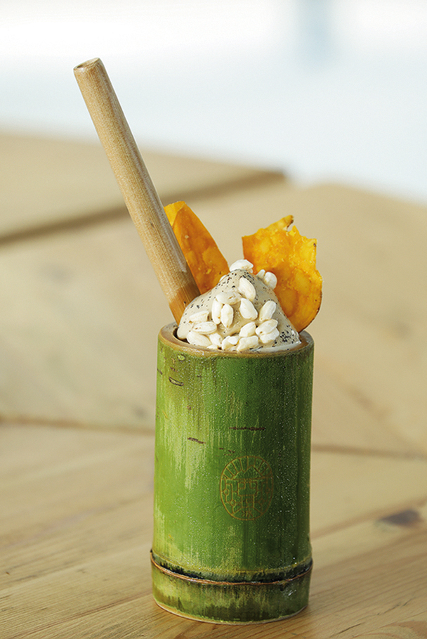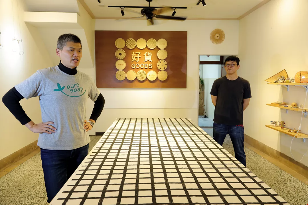2015年他再租下2樓廢棄不用的台西員工宿舍,以5,500條的竹片編成天花板與廊柱,改造成為「竹青庭人文空間」;2018年底供應醬筍雞、筍干焢肉、地瓜泥等呼應在地食材的餐點,不只是小鎮文創活化場域的一個例子,也具有重現竹山竹藝的意義。