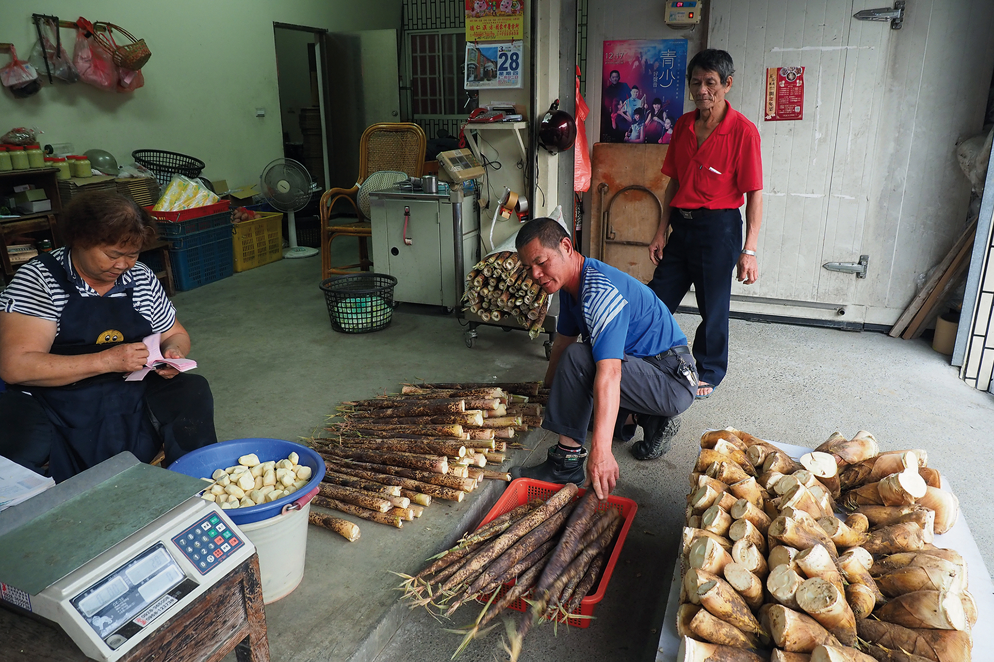 「小鎮農春」市集裡還有已發展有機認證超過十年的有機茶農陳儀龍,天未亮即採收含著露珠、農民陳熟榮戲稱為「孝筍」的竹山春筍,以及因日夜溫差大,又甜又Q的地瓜。濁水溪社大有機栽培班班長蘇鏈琪說:「小鎮文創協助我們產品設計,尤其是發展電商的通路,對我們很有幫助。過去到街頭擺攤,還要擔心東西賣不掉,現在客人下訂,我們早上採,產地直送,農民可以專心開發生產,下一步還要推出蔬菜箱,滿足客戶更多需求。」