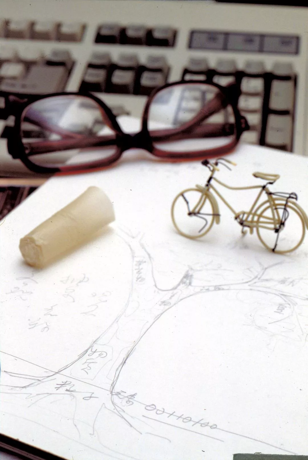 工作枯燥之餘,順手用鐵絲捏個小腳踏車調劑。(邱瑞金)