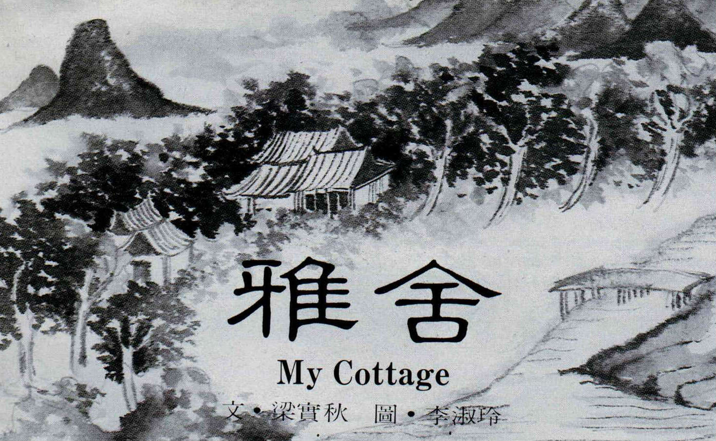 「雅舍」最宜月夜——地勢較高,得月較先。看山頭吐月,紅盤乍湧,一霎間,清光四射,天空皎潔,四野無聲,微聞犬吠,坐客無不悄然!舍前有兩株梨樹,等到月升中天,清光從樹間篩灑而下,地上陰影斑斕,此時尤為幽絕。直到興闌人散,歸房就寢,月光仍然逼進窗來,助我淒涼。細雨濛濛之際,「雅舍」亦復有趣。推窗展望,儼然米氏章法,若雲若霧,一片瀰漫。但若大雨滂沱,我就又惶悚不安了,屋頂濕印到處都有,起初如碗大,俄而擴大如盆,繼則滴水乃不絕,終乃屋頂灰泥突然崩裂,如奇葩初綻,猛然一聲而泥水下注,此刻滿室狼藉,搶救無及。此種經驗,已數見不鮮。